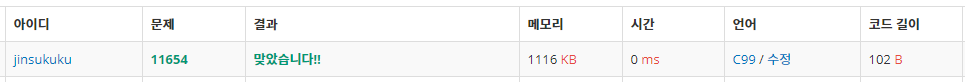 11654번: 아스키 코드