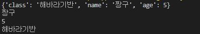 student = { 'name': '짱구', 'age': 5, 'class' : '해바라기반' }
