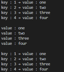 ✔ 만약 중복 key가 있다면 나중에 선언된 key-value를 사용할 수 있고, index는 첫 번째 선언된 위치를 사용한다.
