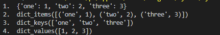 2. items() , keys(), values()