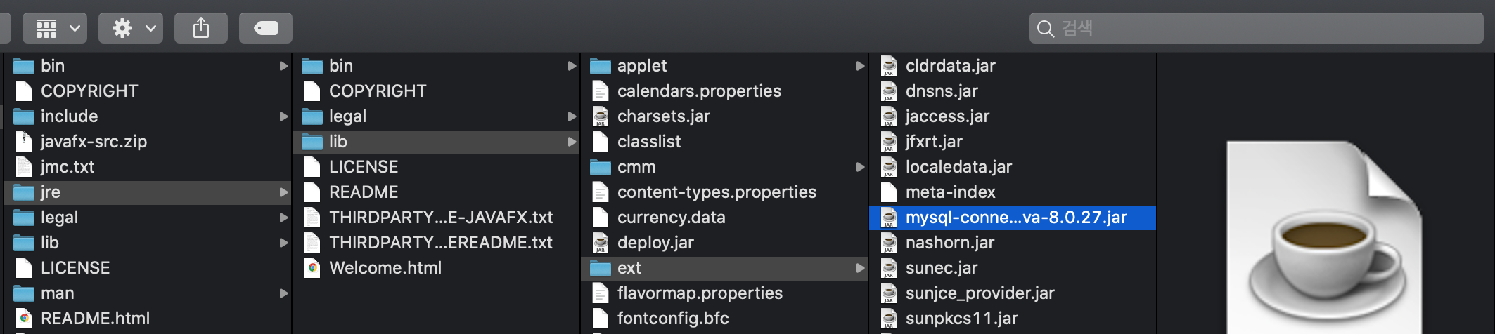 → 설치한 jdk 버전이 여러 개라면 주로 사용하는 jdk폴더 안으로 jar파일을 붙여 넣는다