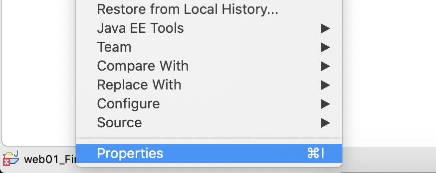 1. jdk버전을 변경해야하는 프로젝트를 우클릭 → Properies를 선택