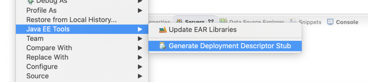 - JavaEE Tools → Generate DEploymetn Descriptor Stub 를 통해 web.xml파일을 만들어줄 수 있다.