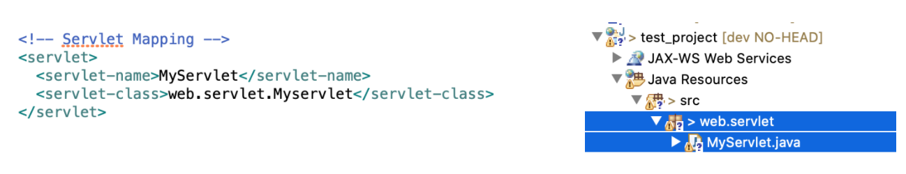 - 객체를 생성하기위한 서버 내부에서의 매핑 → 필요한 가이드라인 : 서블릿 이름, 서블릿의 패키지 경로