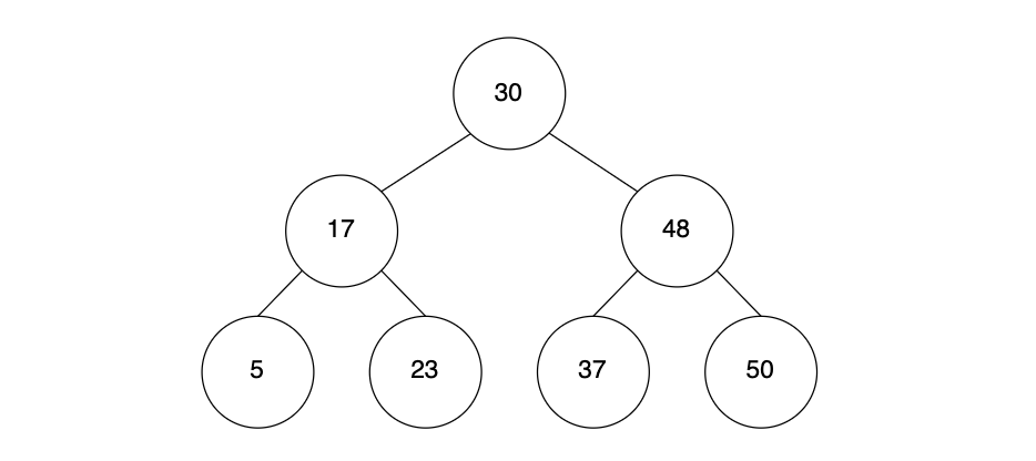 - 이진 탐색은 루트 노드부터 방문한다. 루트 노드는 30이고, 찾는 원소 값은 37이다
