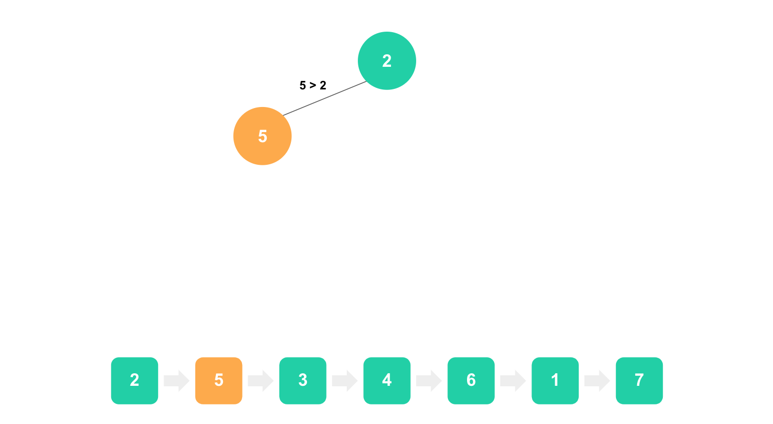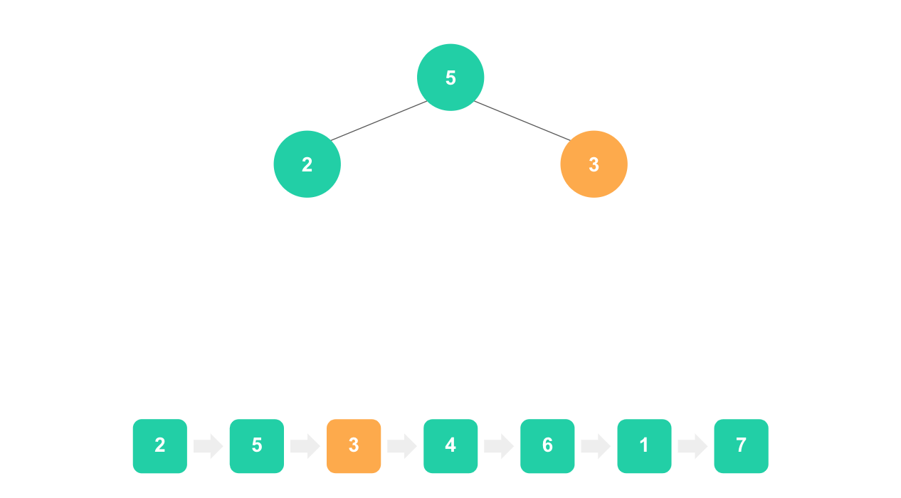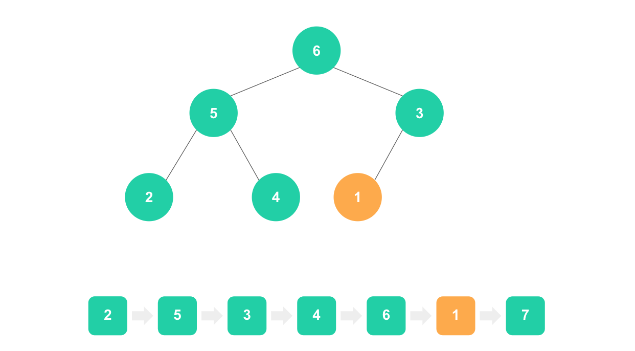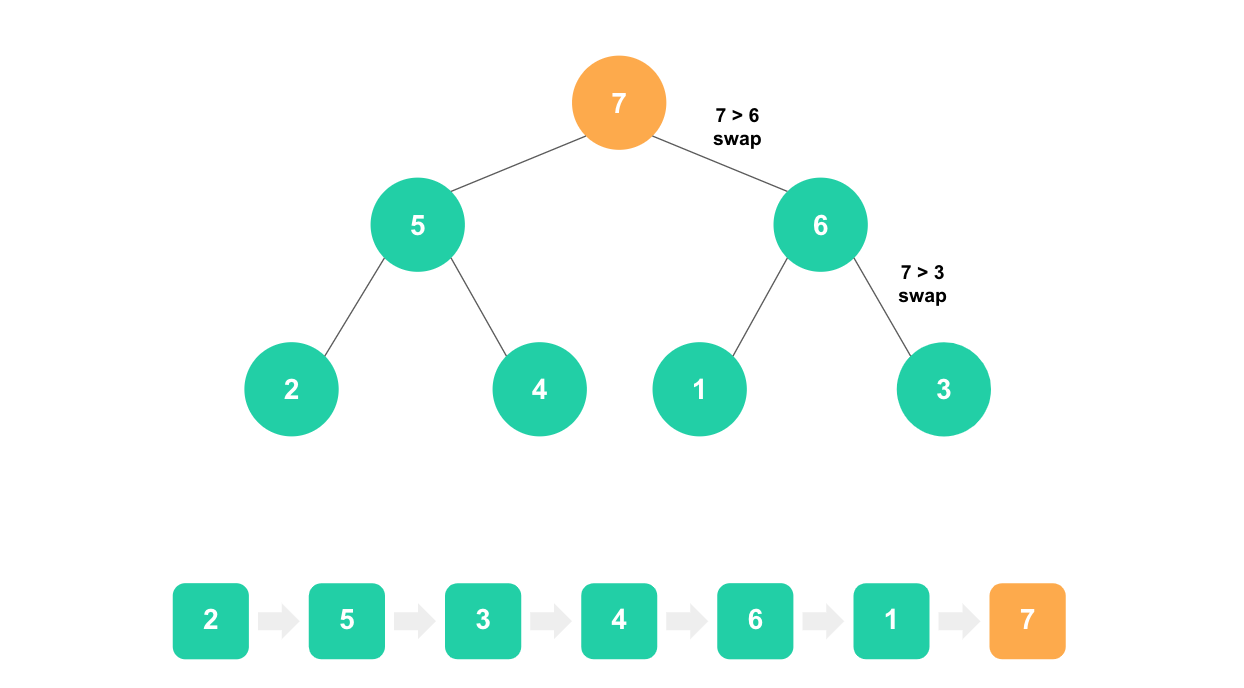 2 → 5 → 3 → 4 → 6 → 1 → 7의 순서로 최대 힙에 값을 삽입하는 과정을 살펴보자