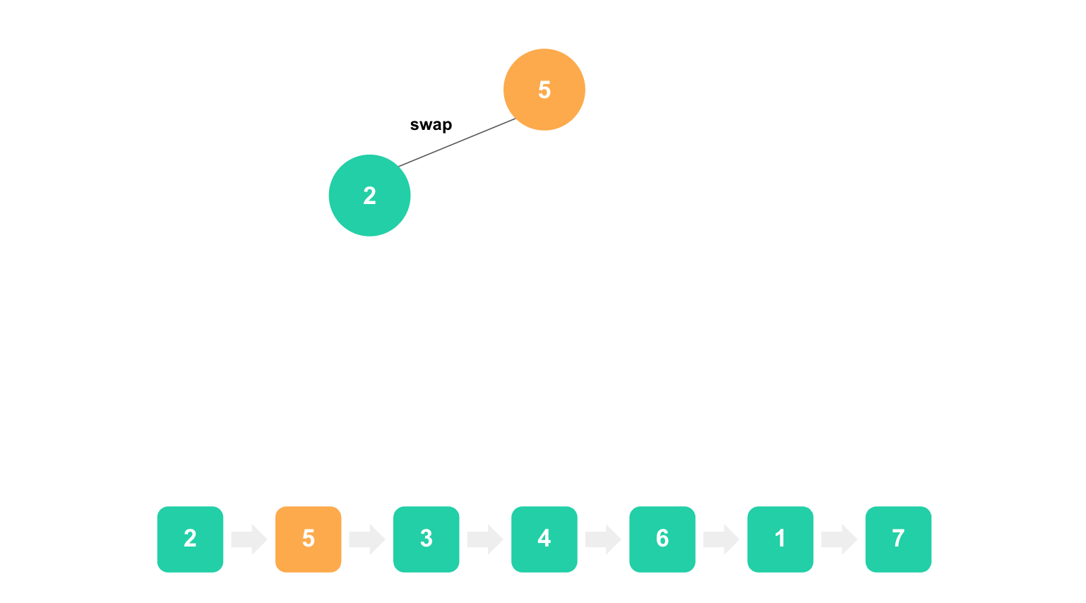 5을 삽입한다. 부모 노드(2) 보다 자식 노드(5)가 크기 때문에, swap을 진행한다
