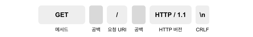 # 요청라인(메서드, 요청 URI, HTTP 버전, 개행문자) → GET메서드, / , HTTP 1.1버전