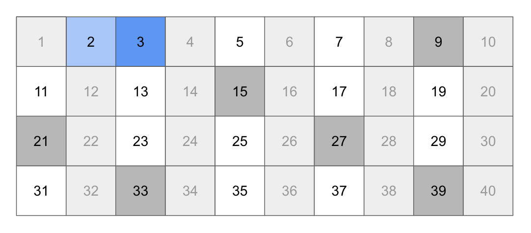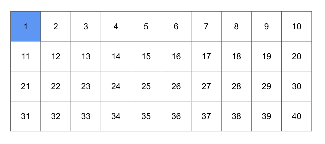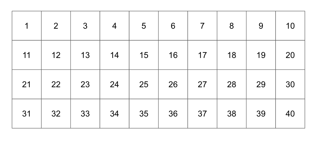 먼저 1부터 40까지의 숫자를 위와 같이 나열한다