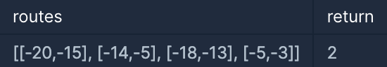 - routes에는 차량의 이동 경로가 포함되어 있으며 routes[i][0]에는 i번째 차량이 고속도로에 진입한 지점, routes[i][1]에는 i번째 차량이 고속도로에서 나간 지점이 적혀 있습니다.