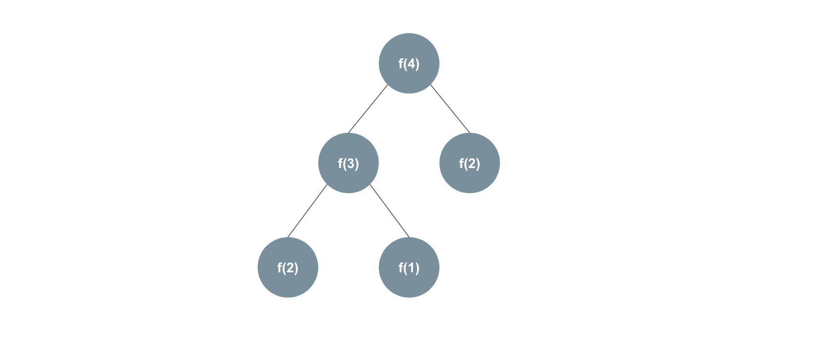 - n번째 피보나치 수를 f(n)으로 표현한다면 , 4번째 피보나치 수 f(4)를 구하기 위해 위와 같이 함수 f를 반복해서 호출해야 한다