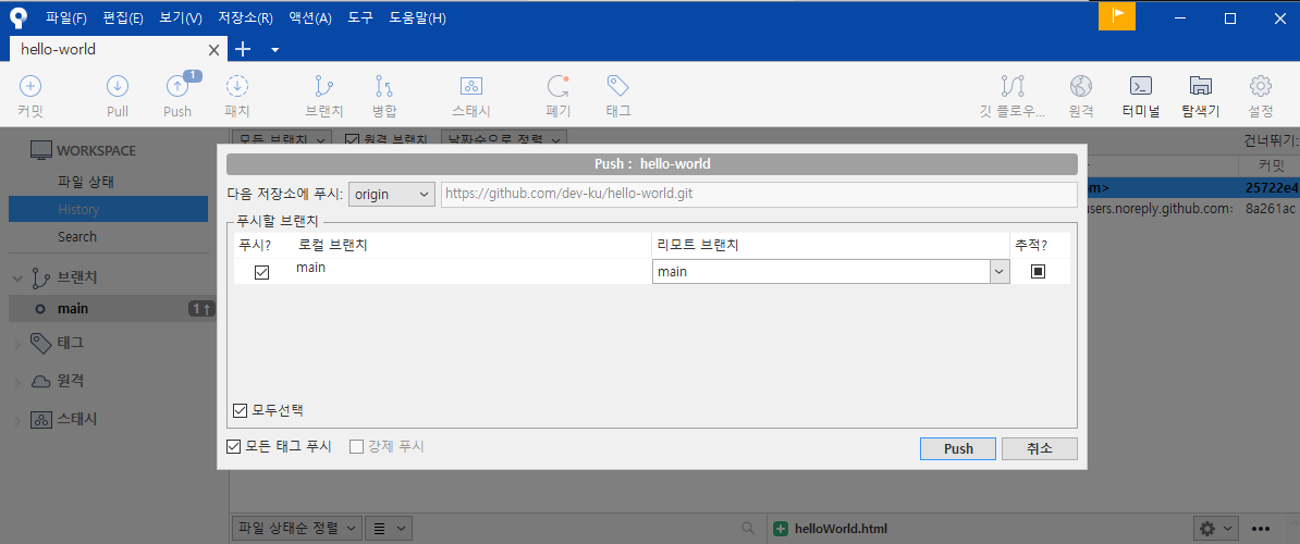 6. 그리고 Push를 통해서 GitHub에 업로드할 수 있다.