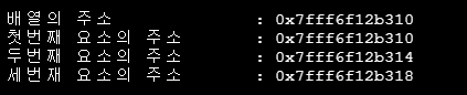✔ 주소를 확인하면 요소의 주소가 자료형의 크기만큼 차이가 발생하는 것을 확인할 수 있다.