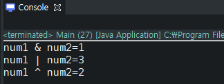 System.out.println("num1 ^ num2="+(num1 ^ num2));