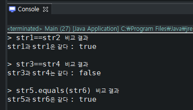 System.out.println("\n> str5.equals(str6) 비교 결과");