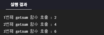 printf("%d번째 getsum 함수 호출 : %d\n",i,sum(n));